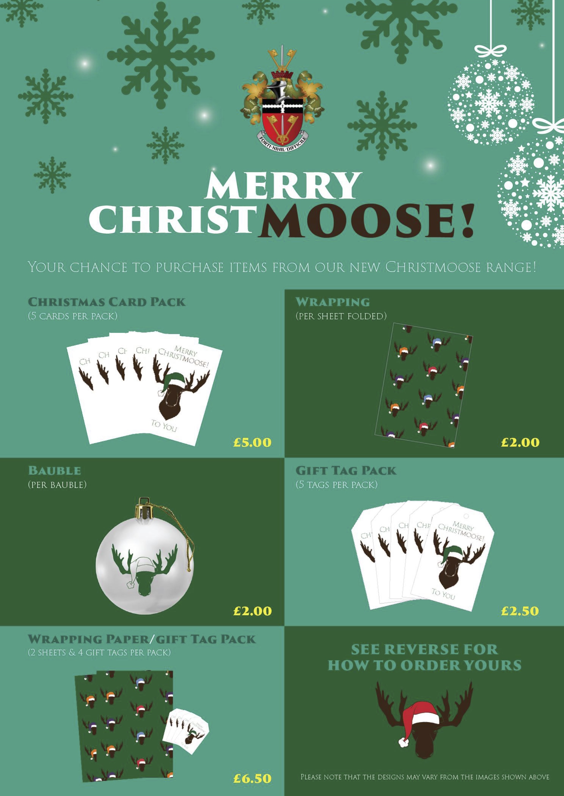 We are excited to share the school's new Christmas range depicting the famous Moose that holds pride of place in the dining hall.